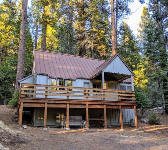There is parking for two cars in front of this cabin.